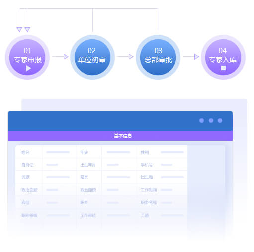 專家智庫系統(tǒng)實(shí)現(xiàn)工程技術(shù)專家信息在線申報(bào)、審批、評(píng)審、入庫、考評(píng)等全流程規(guī)范化管理,形成包括專家基本信息、標(biāo)簽信息、項(xiàng)目業(yè)績信息等在內(nèi)的專家信息庫。