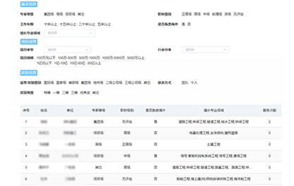 ①基本信息:專家等級(jí)、職稱級(jí)別、擅長專業(yè)領(lǐng)域、工作年限、是否熟悉海外業(yè)務(wù);